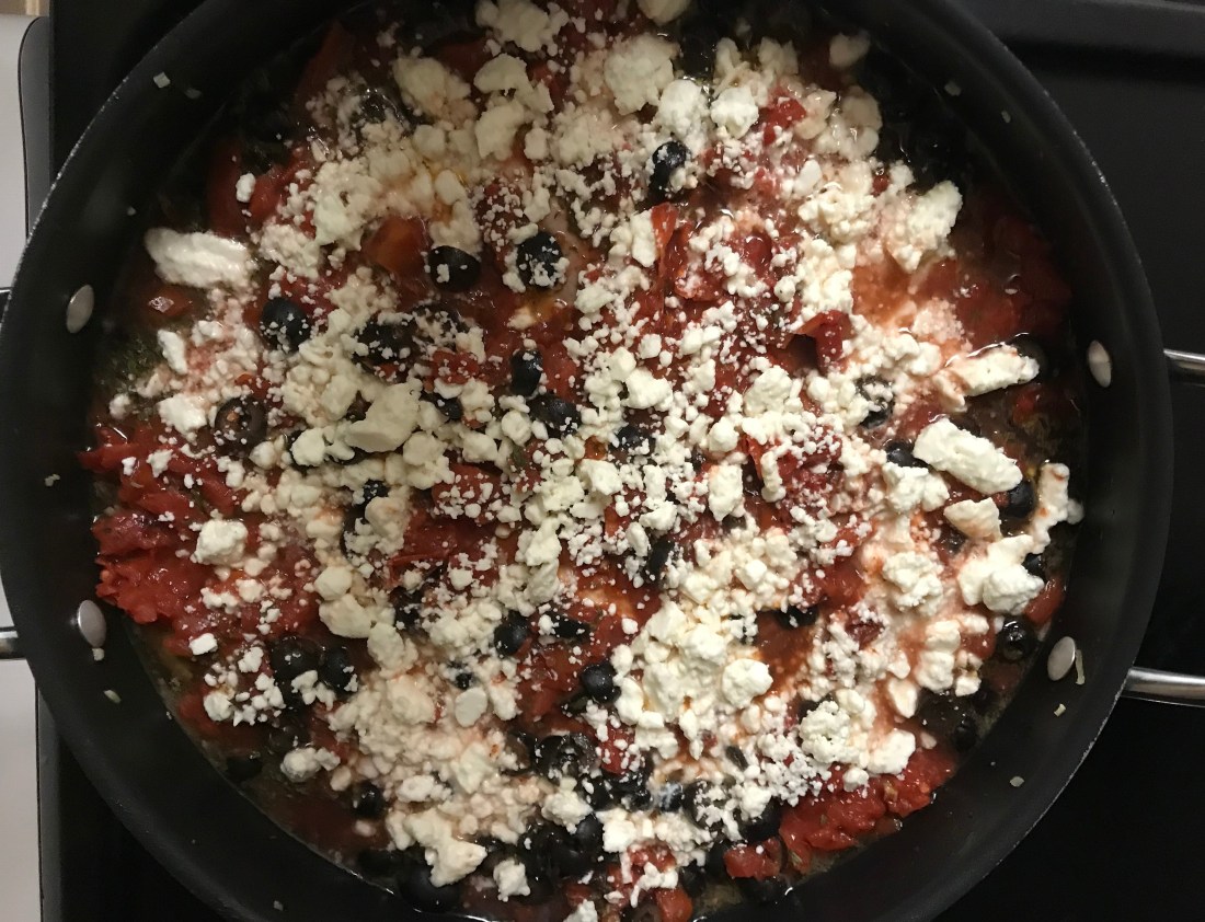 4. Sprinkle feta over the top and simmer, uncovered, for approx. 5 minutes.